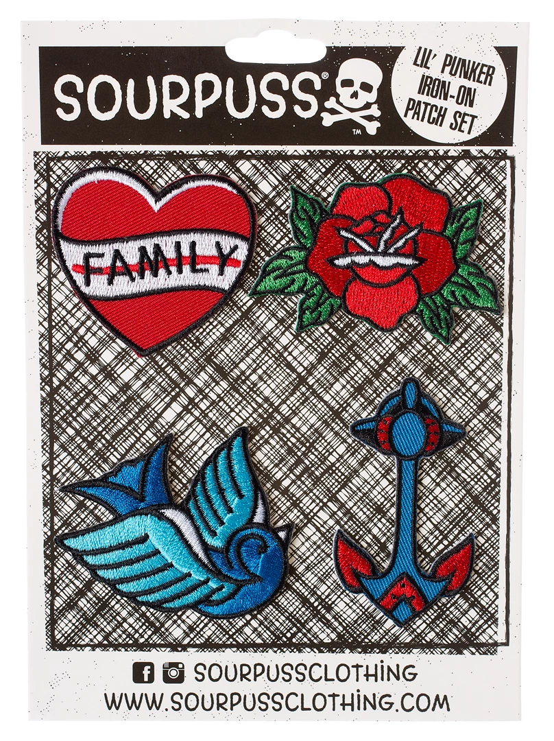 The Tattoo Flash Kids’ Patch Set is made for your lil’ cutie (but is perfect for just about anybody)! Perfect for your tiny tattoo-lover-in-training, this set contains four embroidered patches featuring tattoo-flash classics. You’ll receive one each of our tattoo rose, sparrow, anchor and family heart patches. We think they look just right adorning a pint-sized vest and since each patch has an iron-on backing, they’re super easy to apply! Mix, match & collect all of the sets to start your little one’s patch game off right!