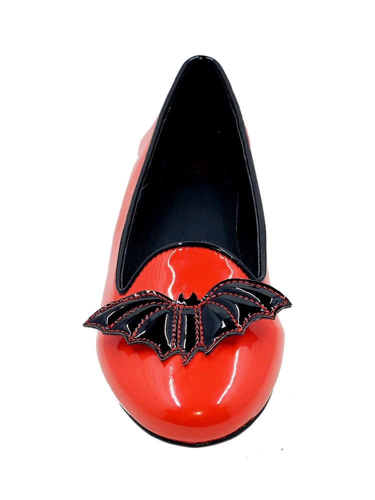 Strangecvlt Brand New Lydia Red & Black Bat Flats are here! If Halloween is Everyday is your world, we’ve got the shoes for you! Fully vegan, with 3D Bat detail on the top and a cozy slip on style. Get these before they fly out of here!