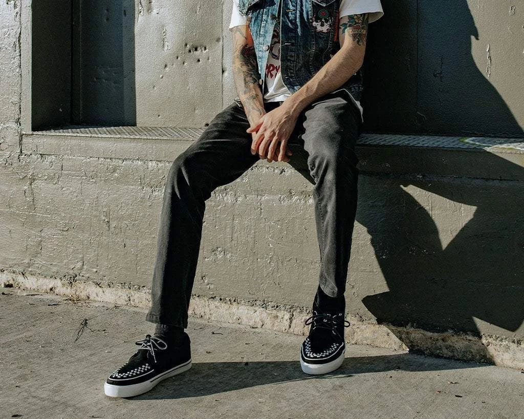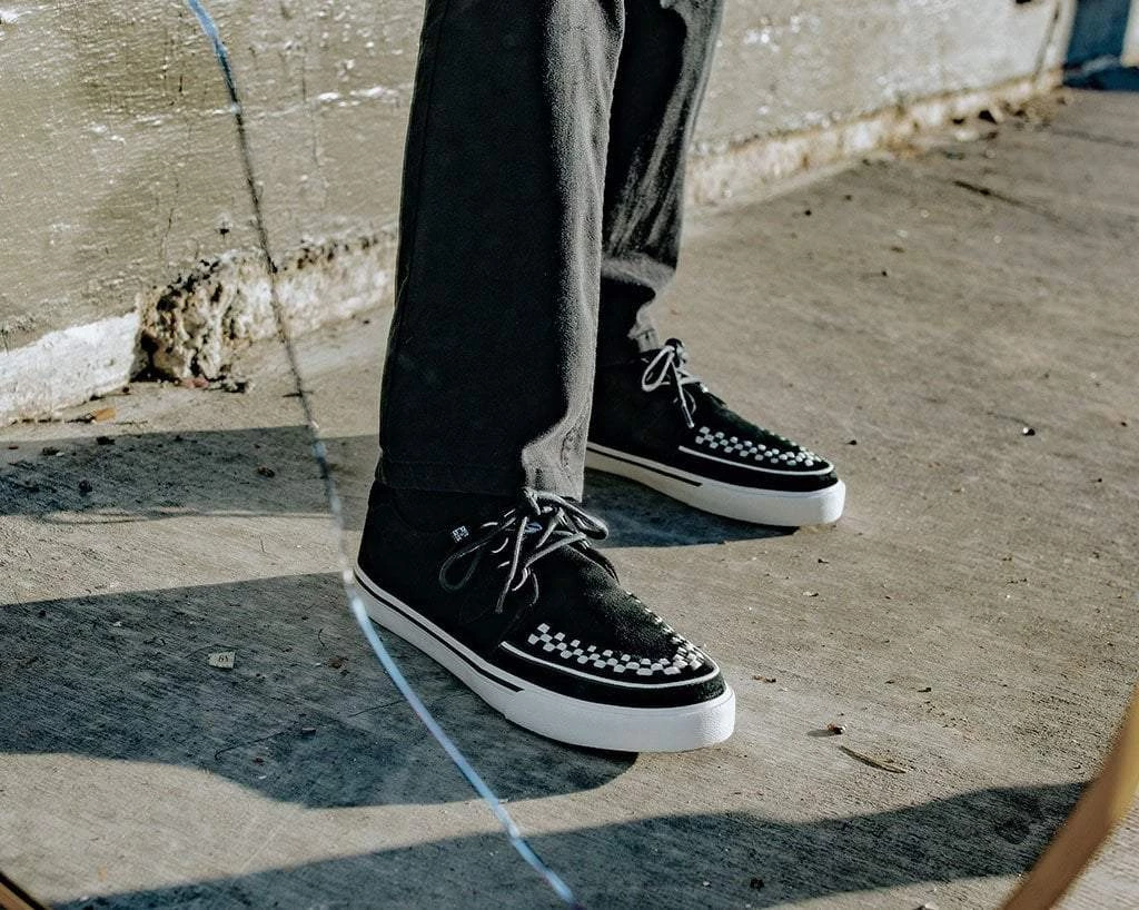Footwear that keeps up with your fast paced life. Creeper Sneakers are known for their style, but they also deliver comfort with a memory foam insole and lightly padded tongue. Features one of our crowd-pleasing upper styles of black cow suede, a white sole, classic D-rings & iconic interlace detailing along the front. These sneakers bring you everyday wearability with a clean style.