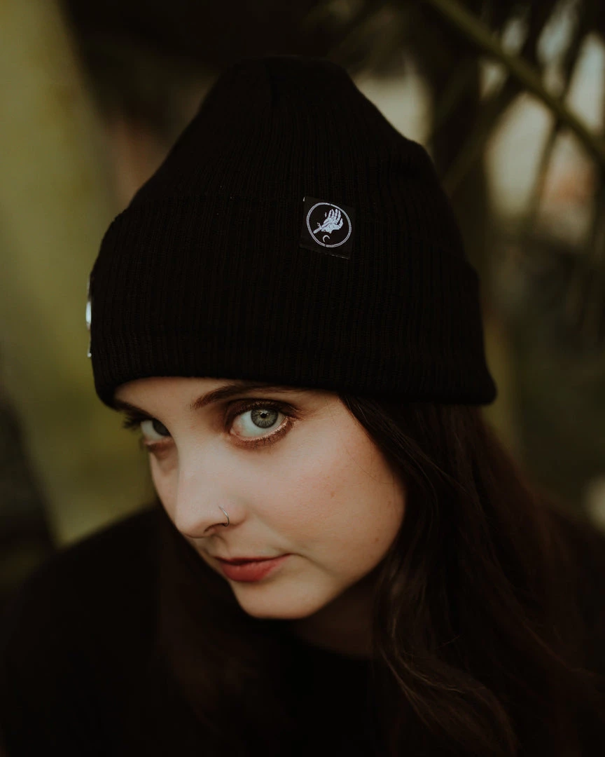 Our new ultra cozy beanie that can be worn a variety of ways! Each beanie is complete with a two inch scythe pin that can be worn anywhere you desire on the beanie.