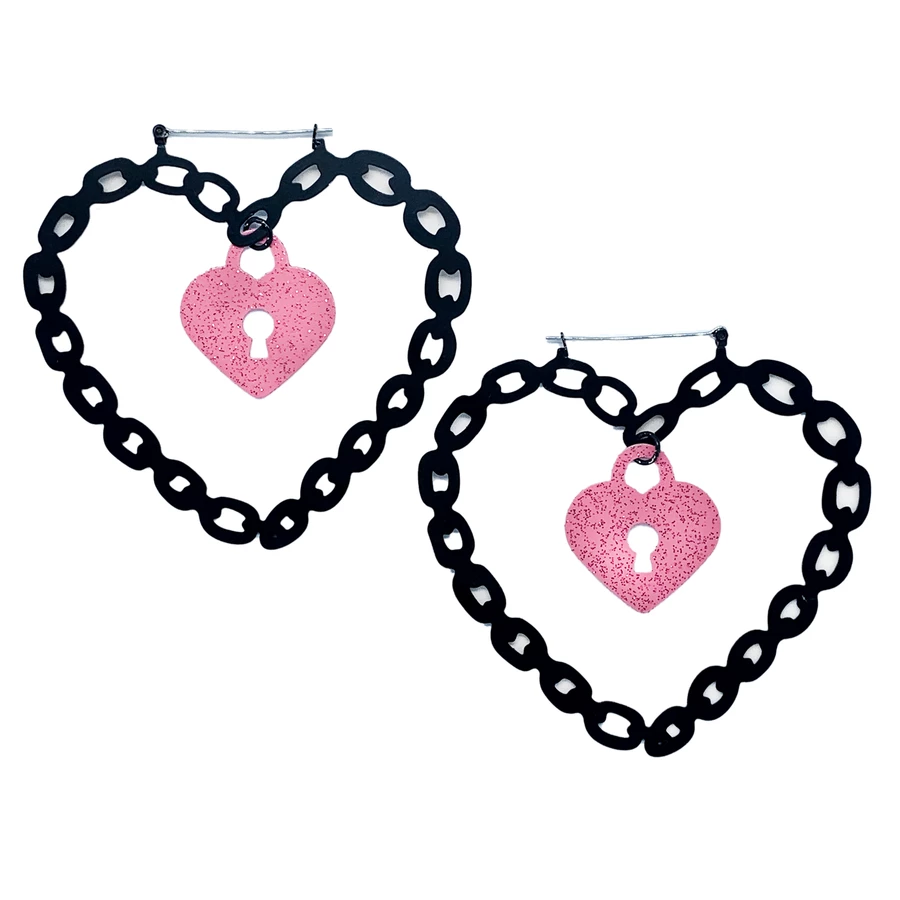 - Matte Black Heart Shaped Chain with a Pink Glitter Heart Lock